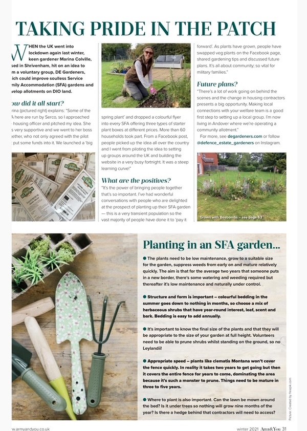 We are delighted to have been written up in the winter edition of the AFF magazine, Army & You with an extensive section on gardening in the military.